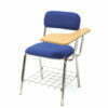 Wooden seat & back with heavy duty writing table, painted metal frame with powder coated basket.
