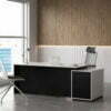 Luxury L-Shape desks with optional side storage, customizable in various sizes and a wide range of high-quality finishes.